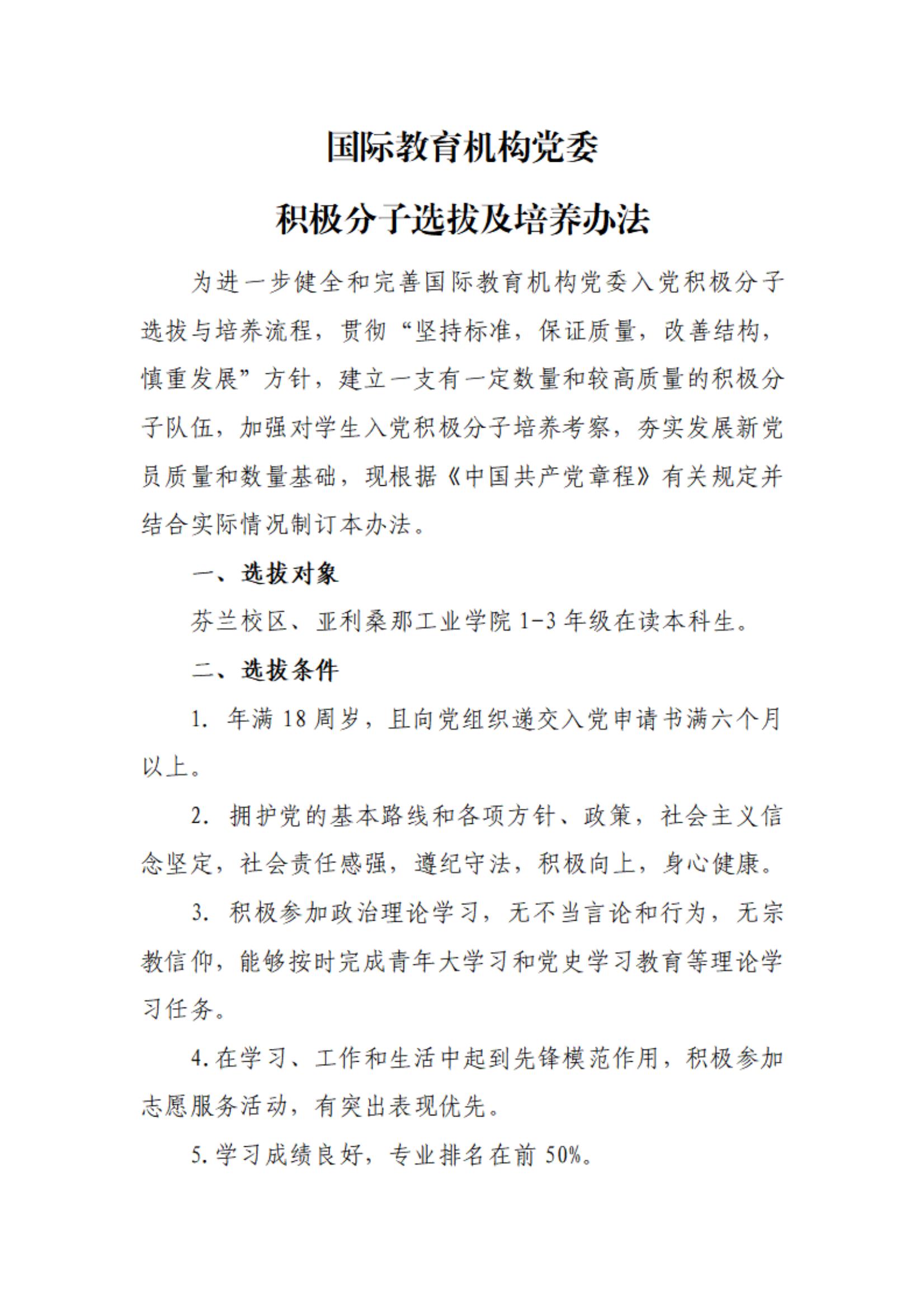 国际教育机构党委积极分子选拔及培养办法