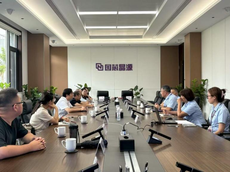 8月8日上午,百家乐试玩 一行人前往唐山国芯晶源电子有限公司(以下简称“晶源电子”)进行交流。徐建民总经理向百家乐试玩 一行人介绍了晶源电子的发展历程、产业规模、目前的主要产品和主要客户等情况。张立强副总经理带领百家乐试玩 一行人参观了公司的生产和装配车间,介绍讲解公司产品实物。