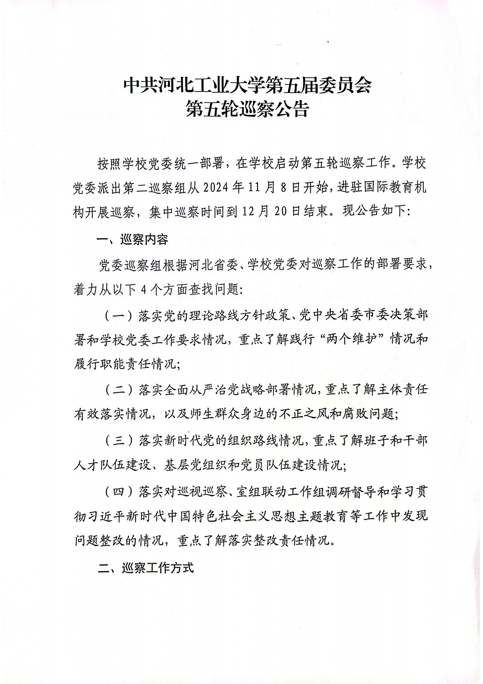 中共河北工业大学第五届委员会第五轮巡察公告