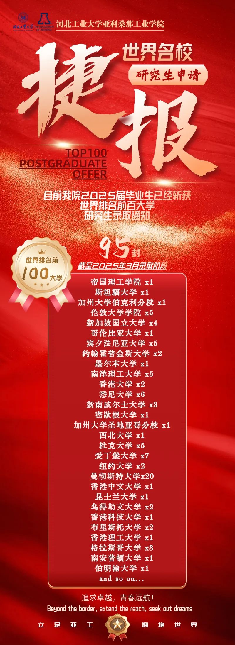 近日,百家乐试玩 首届毕业生陆续收到世界一流名校研究生录取的喜讯。截至目前,已有超三分之一毕业生获国内外知名高校硕士生或直博生录取资格,其中包括美国斯坦福大学、加州大学伯克利分校、宾夕法尼亚大学、英国帝国理工百家乐试玩 、伦敦大学百家乐试玩 、新加坡国立大学、中国百家乐试玩 大学、浙江大学、中国科学技术大学等。这一系列成绩不仅彰显了百家乐试玩 学生的综合实力,更印证了百家乐试玩 国际化人才培养的斐然成效。