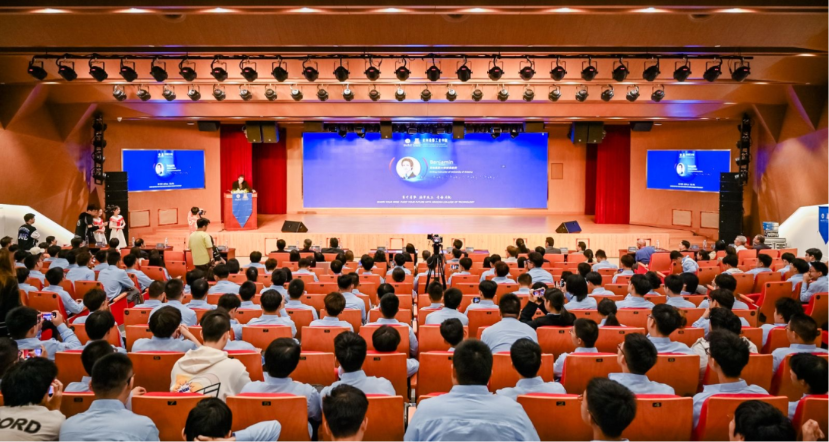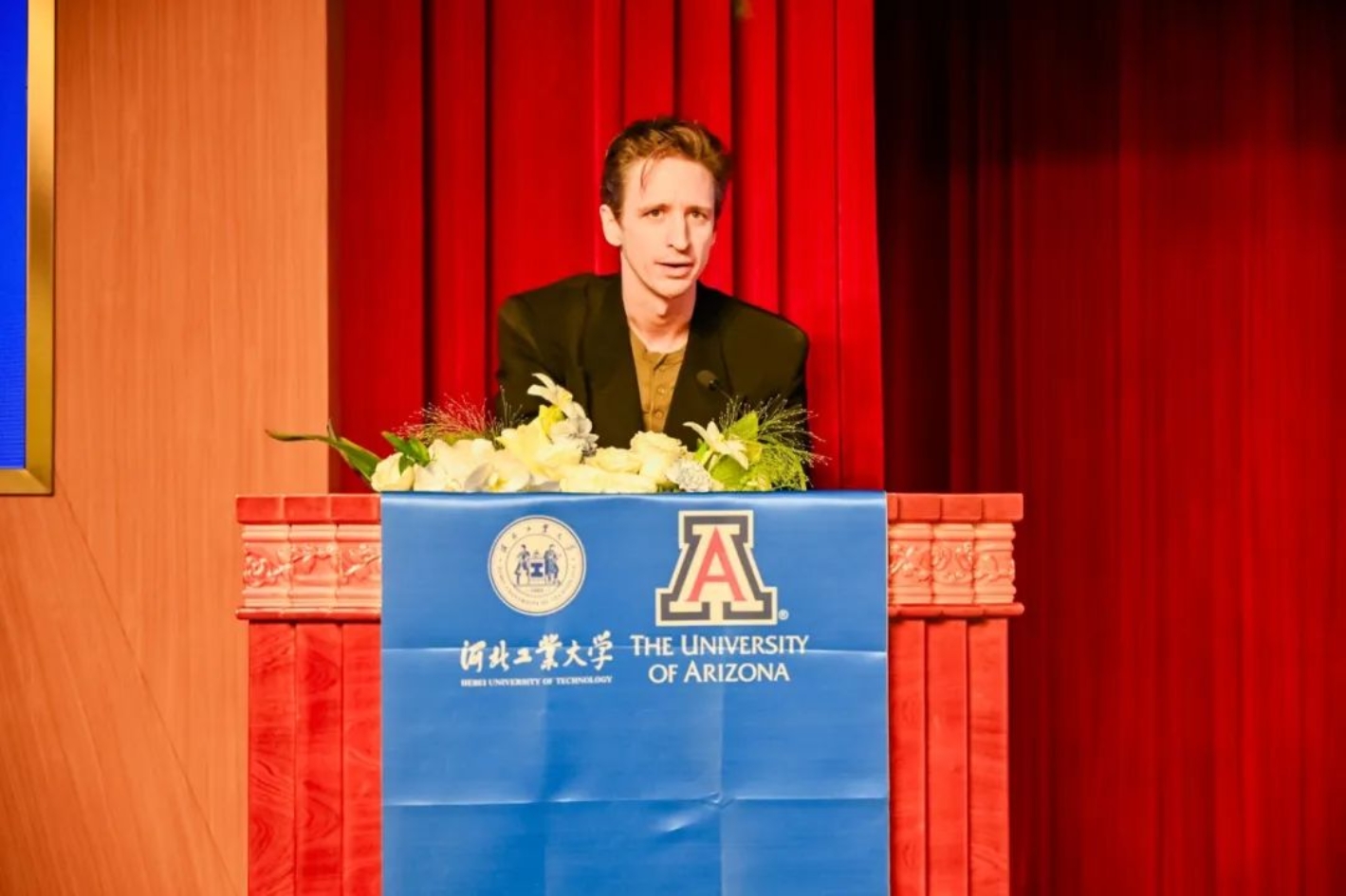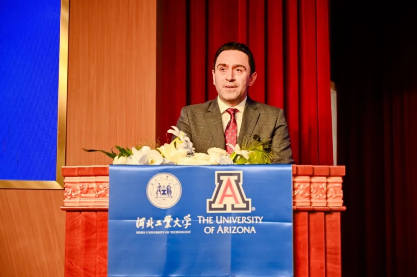 机械工程系Kavan Hazeli副教授讲话提到,希望学生们在全英文的教学环境中能够实现多语言交流,能够动手实践并将理论知识应用于实际问题,恪守亚利桑那大学校训“Bear Down”,勇往直前、全力以赴地迎接大学生活。