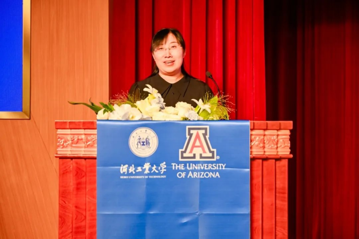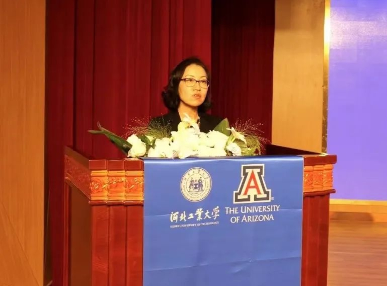 Jenny Lee副校长代表亚利桑那大学致辞。她祝贺河北工业大学建校120周年,感谢河北工业大学对于百家乐试玩 建设的鼎力相助。她表示,两校在过去几年在百家乐试玩 筹建、师资队伍、人才培养等各个环节通力合作,未来将继续保持紧密合作伙伴关系,融贯中西方先进的科学与工业知识,培养学生的全球视野,提高学生跨文化交流能力,为同学们搭建高效、专业的国际化教育平台而不懈努力。