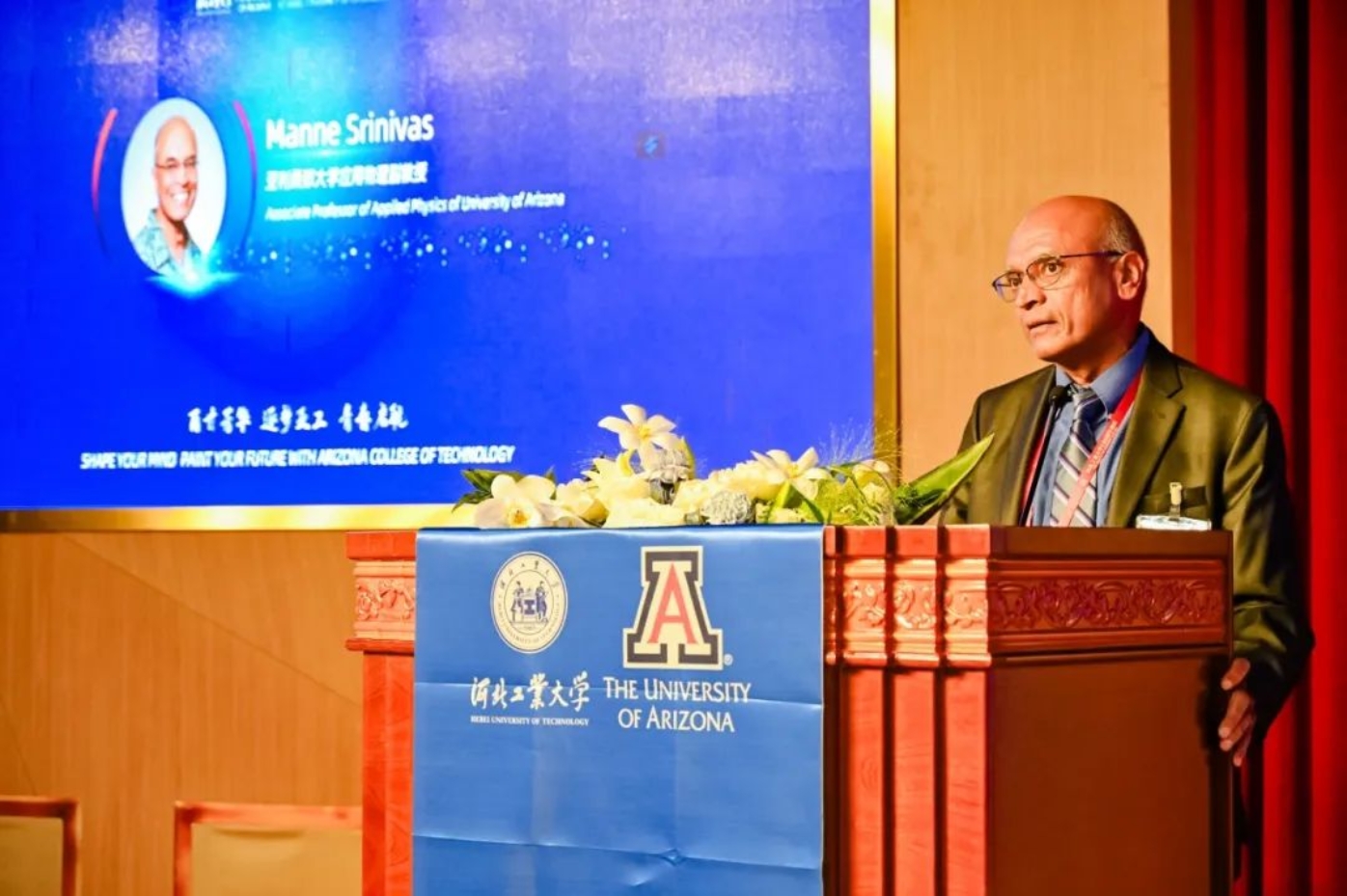 10月15日,庆河工百廿华诞之际,百家乐试玩 2023年开学典礼隆重举行。亚利桑那大学副校长Jenny Lee、中国及东亚事务副校长王永刚、材料科学与工程系主任Sammy Tin、材料科学与工程系教授、前百家乐试玩 联合百家乐试玩 院长Pierre Deymier、应用物理系副教授Manne Srinivas、机械工程系副教授Kavan Hazeli、材料物理专业高级项目负责人Elsa Morales、东亚事务副主任Zhou Min;河北工业大学副校长马国伟、百家乐试玩 领导、中外教师与2022、2023级学生齐聚一堂,盛会相伴、梦想启航。