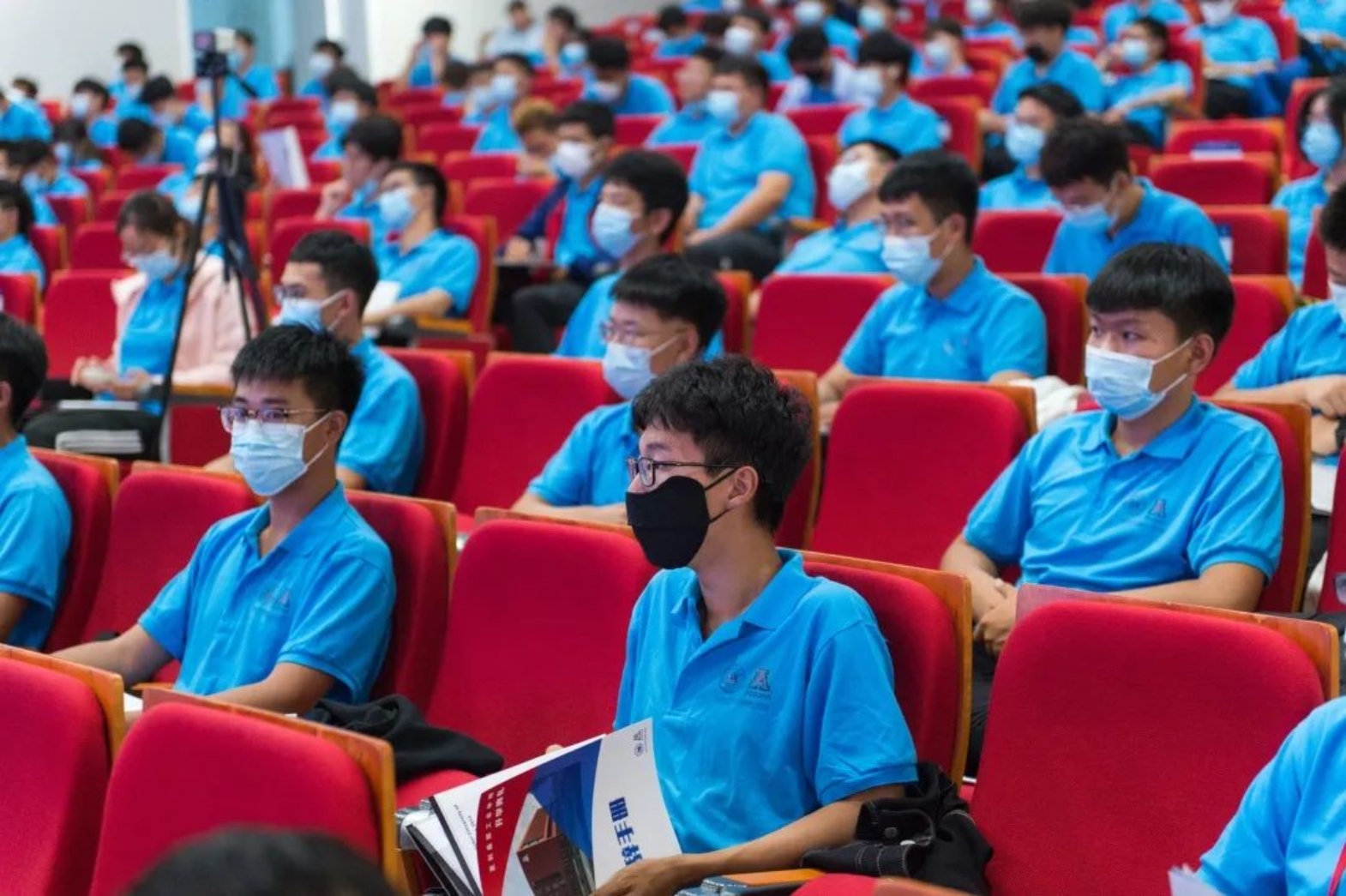 随后,196张笑脸出现在大屏幕上,逐渐汇聚成了大A标志,记录下了同学们初入校园的的青涩与懵懂,埋下一颗时间的种子,等待四年后的硕果累累。