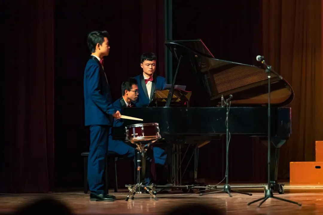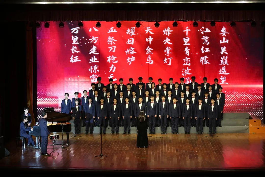 余音未落,琴声陡转。一抹柔风化为号角,台上亚工学子顿时戎装戴甲,威风凛凛,歌声似冽冽西风,穿越时空,震响娄山关。军鼓响起,铿锵有力的歌声唱出了青春的“最强音”。