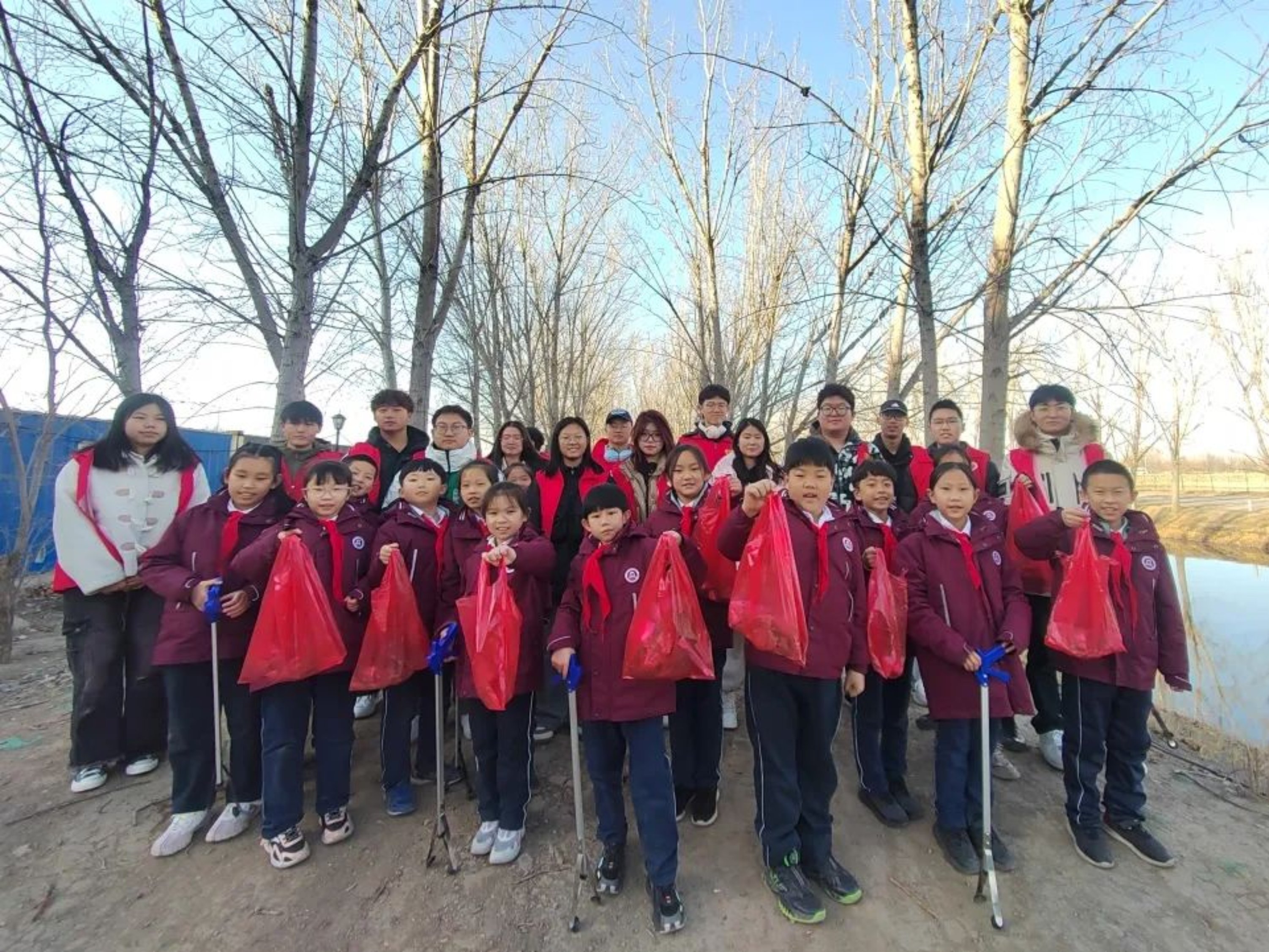 随后,志愿者们带领同学们身体力行地将学到的环保知识运用到实践当中,并开展河边护滩、清理河滩垃圾的活动。志愿者们身穿红色马甲,大手牵小手,大家不怕脏、不怕累,忙忙碌碌却乐在其中。青年志愿者们用实际行动树立榜样,积极引导小学生增强生态文明意识、提高环境保护自觉。